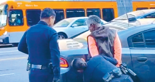After the assault, the suspect crossed Vermont Avenue and entered a Starbucks on Wilshire Boulevard, southeast of the intersection. Captain Ponce reversed his car and parked in front of the Starbucks to pursue the suspect. “I was concerned that something else was going to happen inside the café,” Ponce said, “Fortunately, I was able to arrest the suspect inside the Starbucks without much resistance and take the suspect outside.”