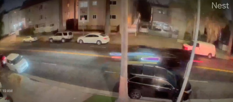 Blurry surveillance footage of two vehicles involved in a non-contact hit-and-run crash on July 20, 2024 [KTLA Screen Capture]