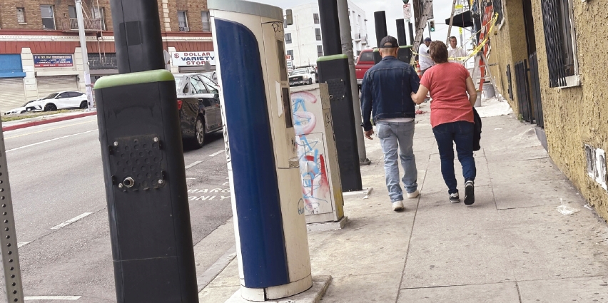 A BlueLA EV charging spot sits abandoned on Hoover Street in Koreatown. [Sangjin Kim, The Korea Daily]