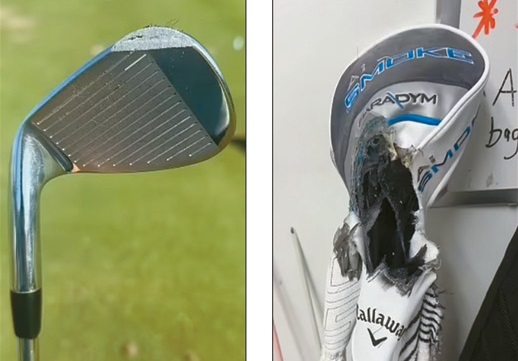 According to Chang, she recently flew Delta and checked her golf club bag as luggage. She went to get her bag after the flight and was shocked at what she saw. Her golf club bag was scorched with a large hole in it, and her 9-iron was ground on one side.