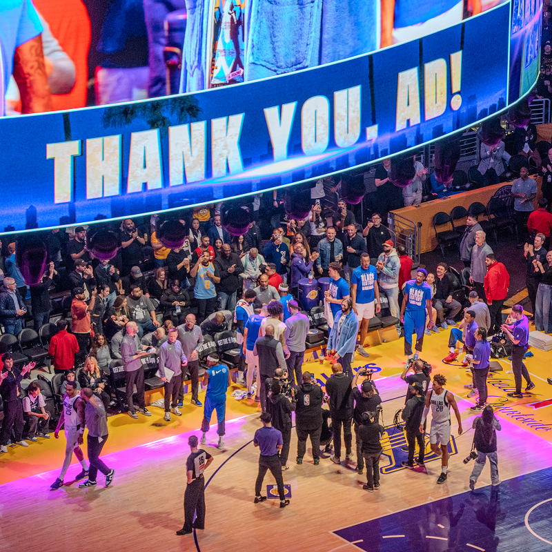 Anthony Davis missed the game due to a groin injury suffered in his Mavericks debut. However, the Lakers honored him with a tribute video in the first quarter. The highlight reel showcased his impact in Los Angeles, including his key role in the 2020 NBA championship. From the bench, Davis nodded in appreciation as the crowd applauded.