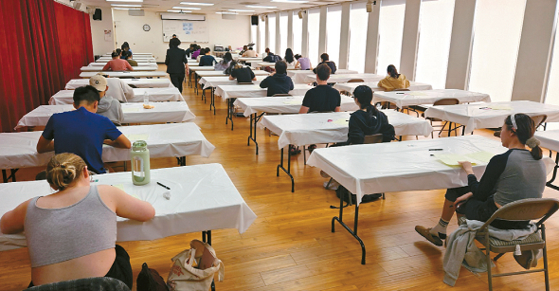 Test takers are taking the Test of Proficiency in Korean (TOPIK) at the Korean Education Center in Los Angeles on October 14. [Courtesy of Korean Education Center in Los Angeles]