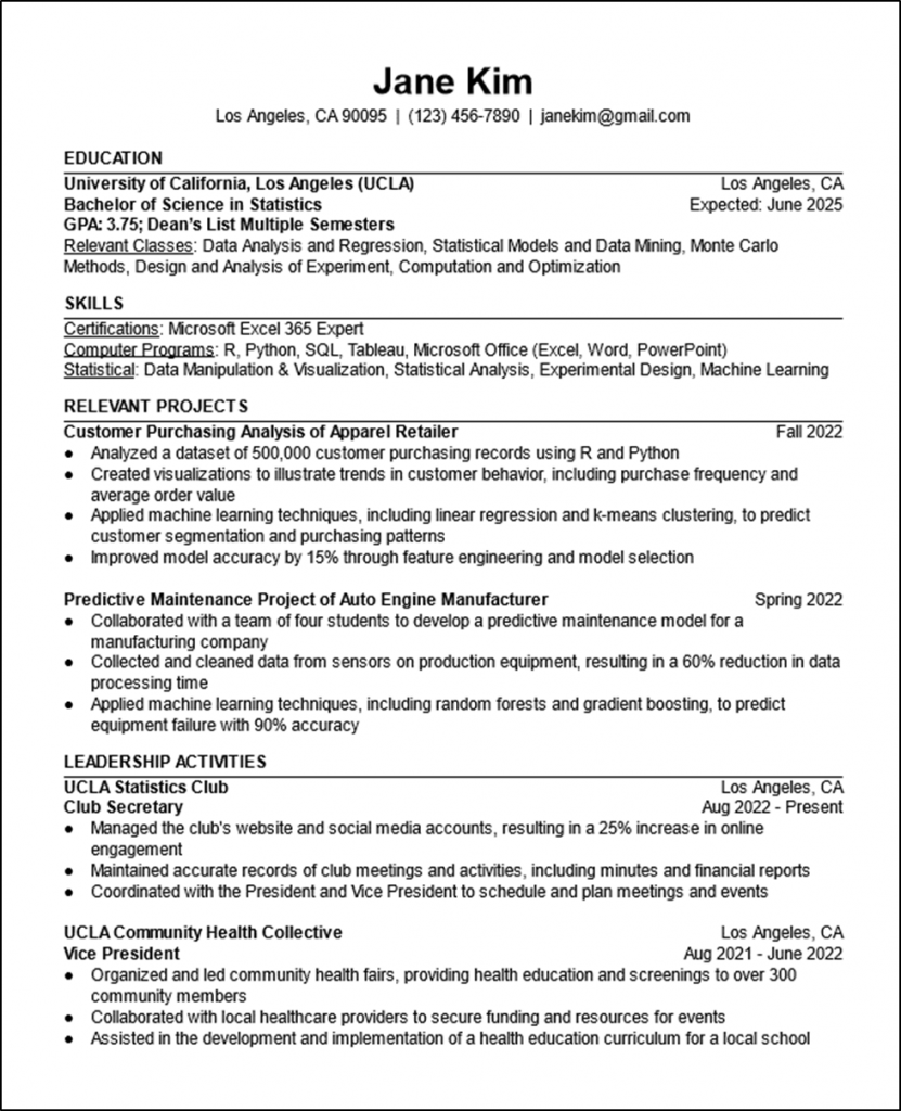 -Below is an example resume for a UCLA sophomore majoring in Statistics