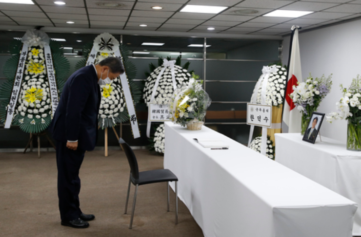 On Monday morning, Korean Foreign Minister Park Jin paid his respects at a memorial altar for Abe at the Japanese embassy’s cultural center. He had returned from a trip from Bali for a G-20 ministers’ meeting and talks with his Japanese and U.S. counterparts last week.