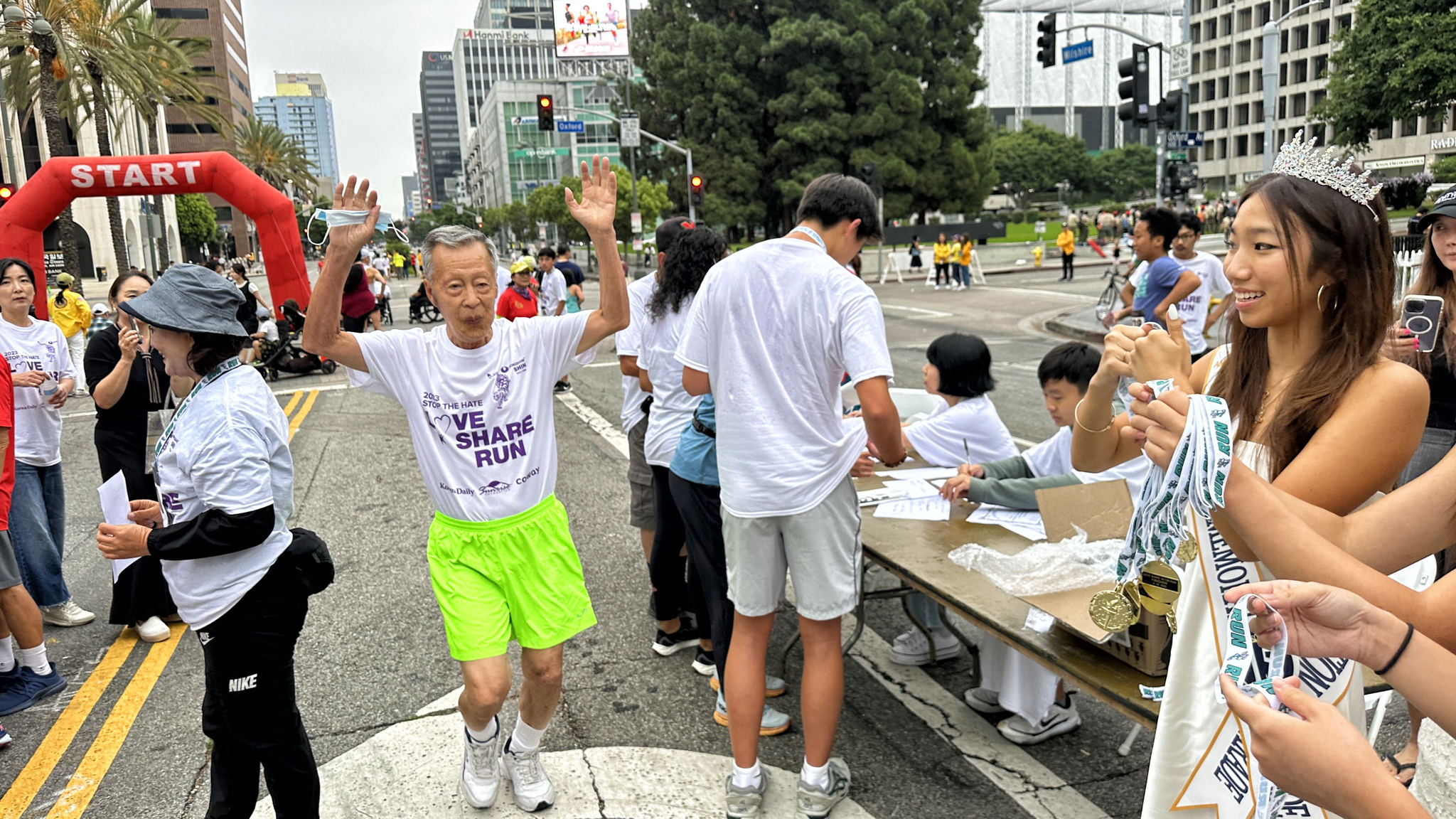 After a four-year hiatus due to the COVID-19 pandemic, the run/walk resumed, drawing over 1,500 runners spanning various ages. Participants ranged from individuals with disabilities in wheelchairs to toddlers as young as 2, and seniors in their 80s. Participants from all over Southern California, including Koreans, Asians, whites, blacks, and Latinos, wore T-shirts with the words “Stop the Hate, Sharing & Love Community” on them as they walked, ran, and enjoyed a community-wide feast.