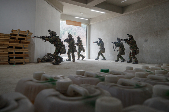 ![South Korean troops train in a bunker simulating a North Korean weapons of mass destruction facility at a training ground in Yangju, Gyeonggi on March 12. [JOINT PRESS CORPS]](https://spcdn.shortpixel.ai/spio/ret_img,q_cdnize,to_auto,s_webp:avif/en.koreadaily.com/wp-content/uploads/2025/03/0312-North.jpg)