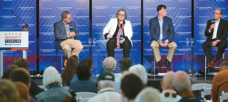 Panelists engage in discussion during the “Cybersecurity” session at the Aspen Security Forum on July 16.