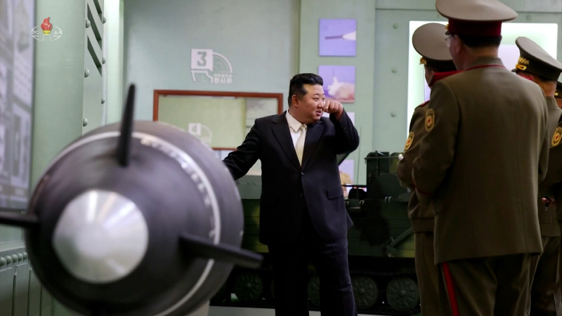 North Korean leader Kim Jong-un at the Defense Science Institute on May 28 [KCTV Screen, Yonhap]