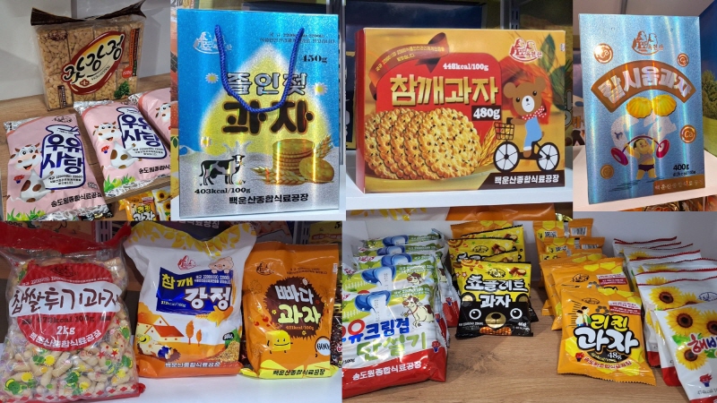 Baekunsan General Food Factory’s condensed milk snacks, Samsok Fruit Processing Factory’s bottled food, Bongseonhwa Brand brassieres, and Jinju red ginseng water cream and whitening toner were among the products showcased by North Korean authorities at the “Joseon Products Exhibition” held in Vladivostok, Russia, from June 26 to 30.