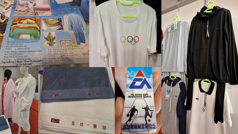 Other displayed items included robes, towels, and toothpaste aimed at local lodging facilities, as well as clothing from the “Dansang” brand made by the Mangyongdae Sportswear Factory, which outfits North Korean athletes for international competitions.