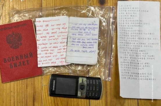 Ukrainian forces also found printed documents written in Korean, providing pronunciation guides for Russian words to be used when handling captured Ukrainian soldiers. The documents contained phrases such as “bros’ oruzhie,” which means “drop your weapons,” and “razden’sya,” Russian for “take off your clothes.”