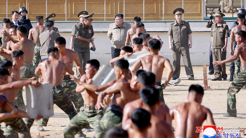 Kim Jong-un inspects the training conditions of combat troops during his visit to a North Korean special operations unit training base on September 11. [KCNA, YONHAP]