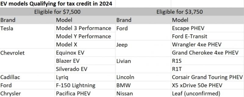 Models previously eligible for the credit but excluded next year include the Genesis GV70 EV, Ford Mustang Mach-E, Volvo S60 Recharge, Audi Q5 TFSI eQuattro PHEV, and BMW 330e.