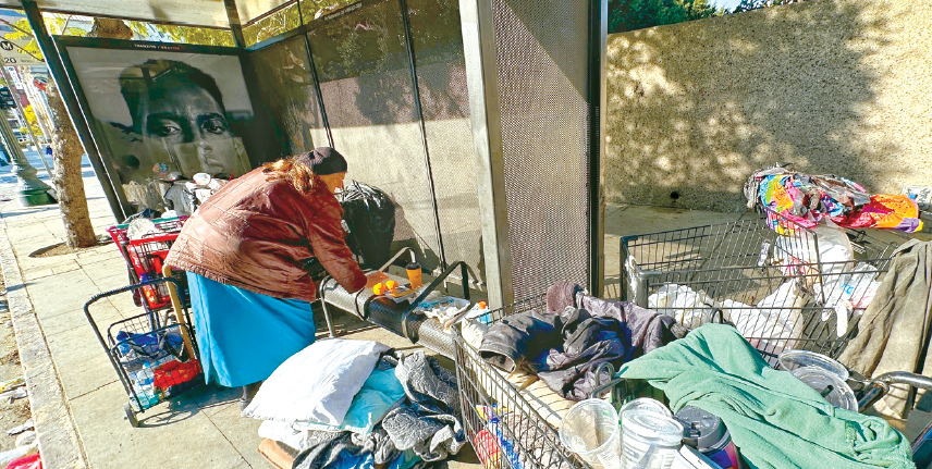 On December 20, homeless campers occupied a bus stop and adjacent sidewalks at the intersection of Olympic Boulevard and Arlington Avenue. It often took over the sidewalk, blocking pedestrian traffic.