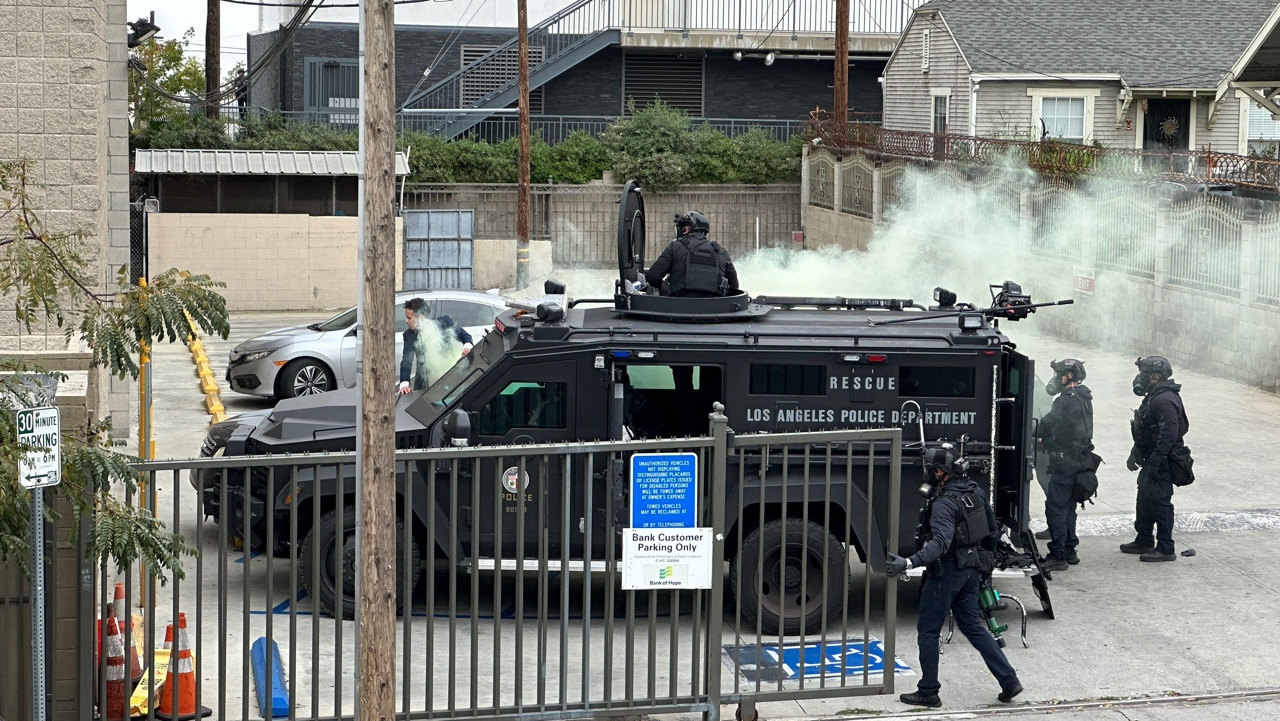 Upon arrival, the police cordoned off the bank and a section of Olympic Blvd. (from Berendo St. to New Hampshire Ave.) and evacuated the employees and customers inside the bank.