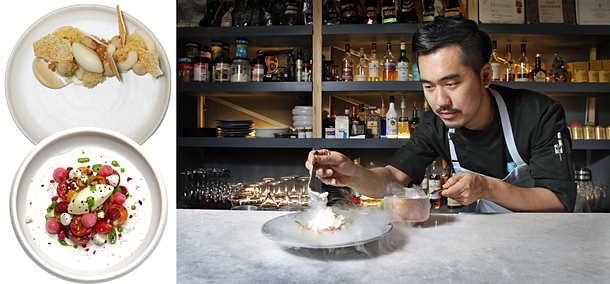 And just as people pair drinks with their foods, Lee offers drinks that go best with each of his desserts. The tomato plate, which is more savory with a hint of sweet, is paired with a dry bubbly drink from Spain, and the watermelon dish is paired with a cocktail made from Campari to match the color. Diners can also choose their own drinks to go with their sweets, from wine to whiskey. Since the restaurant only has one option for beer, but diners wanted more options, the chef is considering making more craft beer available.
