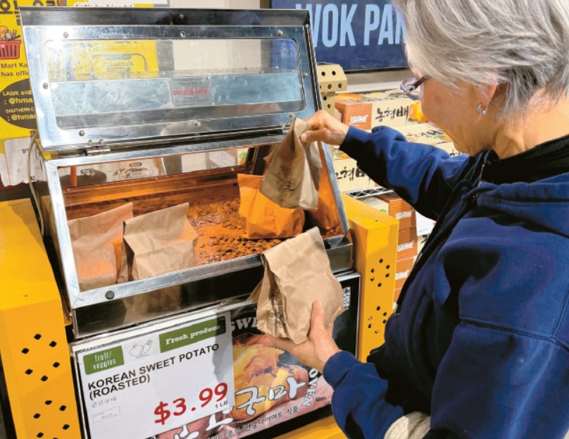 Hyewon Park, an office worker in Koreatown, said the cost of eating out every day has become too heavy a burden. She said roasted sweet potatoes are affordable, filling even when eating just one or two, and convenient for a busy workday.