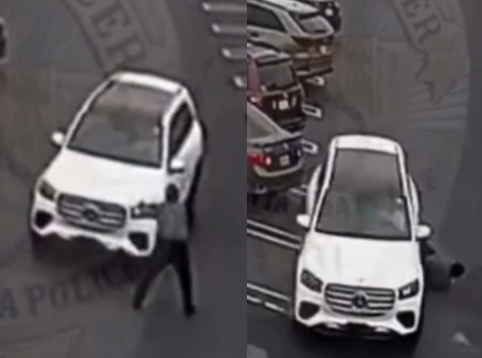 Security footage released by police shows the victim attempting to block the vehicle’s path. As he grabbed the door handle, the SUV continued forward, causing him to lose balance and fall. The vehicle ran over the lower half of his body, leaving him seriously injured.