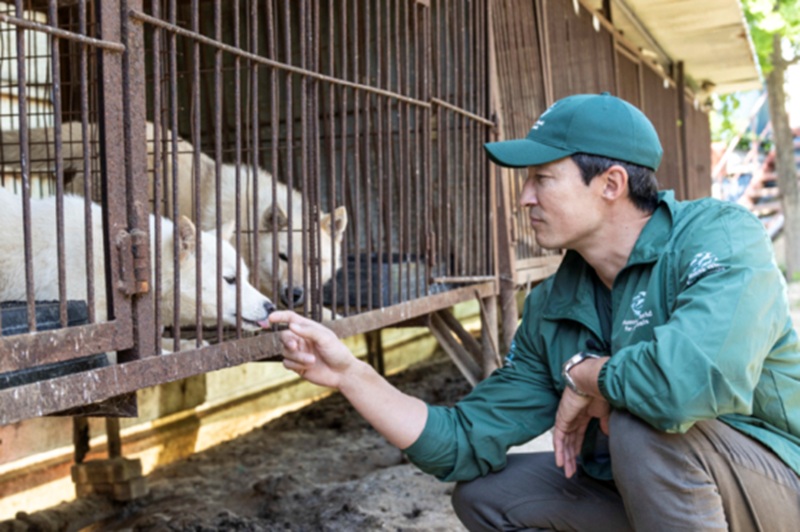 Henney joined the rescue operation on Thursday. Henney has been an active advocate for animal welfare since partnering with Humane World for Animals in 2017. He has donated his time to campaigns against dog meat consumption and adopted a golden retriever named Juliette, rescued from a dog meat farm. At the site, Henney entered one of the cages to lift the dogs out by hand, placing them into transport crates. He also left a message urging support for animal protection efforts.