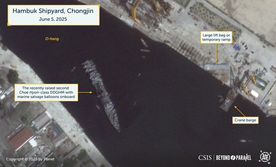 ![This satellite image, taken May 15, shows a North Korean warship in the northeastern port city of Chongjin. [MINISTRY OF UNIFICATION]](https://koreajoongangdaily.joins.com/data/photo/2025/06/06/2d82d745-a2c5-4e2a-ab22-f6f316263e02.jpg)