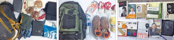 Park Byeong-yeon, 55, had some leftover food such as rice, gimbap (rice rolls) and bread in his backpack.
