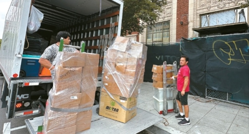 On May 16, workers dismantled kitchen appliances, including sinks, from the ‘SMT LA’ building and loaded them onto a truck. [Sangjin Kim, The Korea Daily]