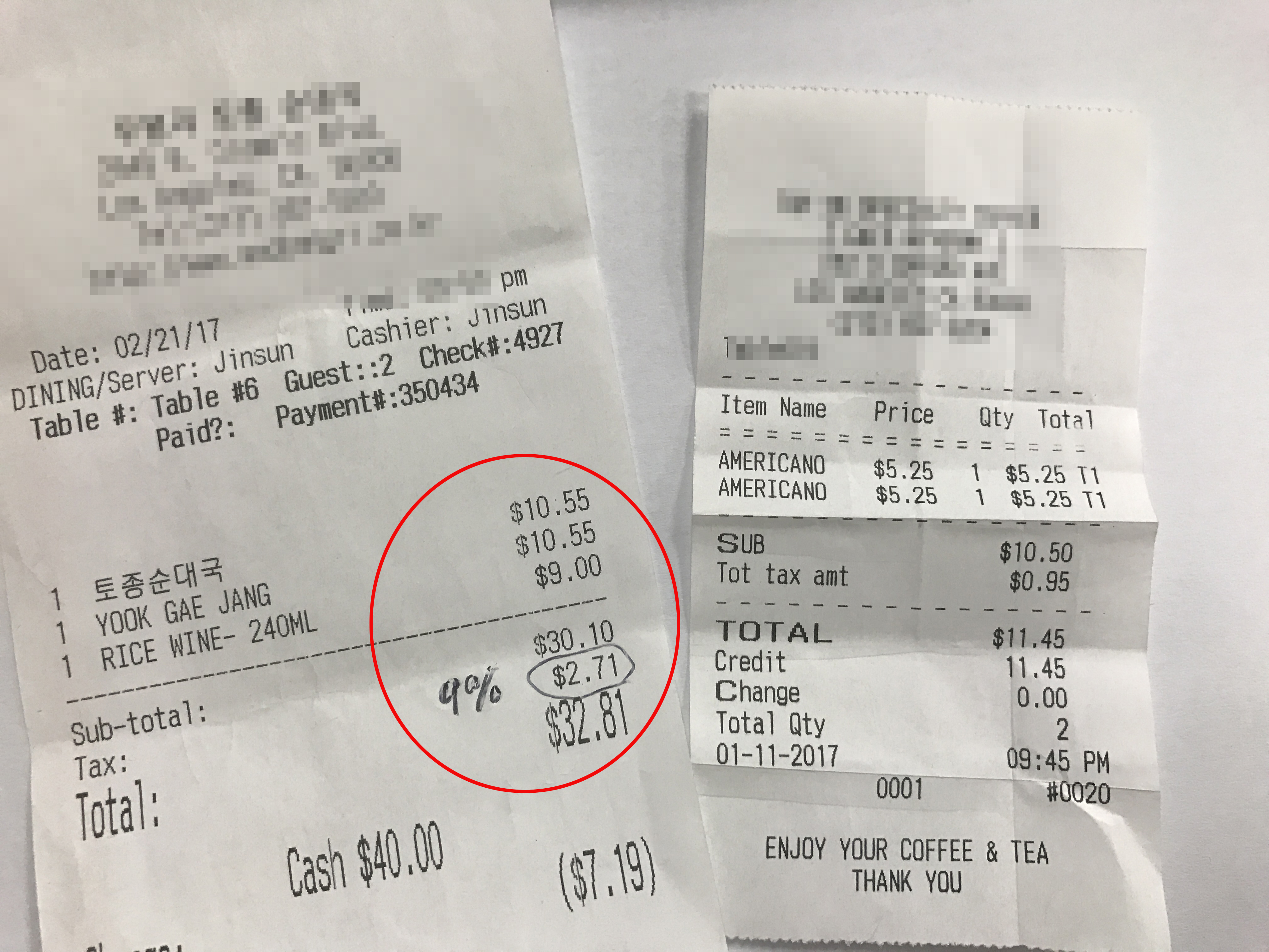 “I’m a businessman, so I notice it right away when the tax is not imposed correctly,” Lee said. “The tax rate on the receipt was 9 percent. It seemed like they had no idea about the change, so I let their employee know. He told me that they’ll make the correction.”