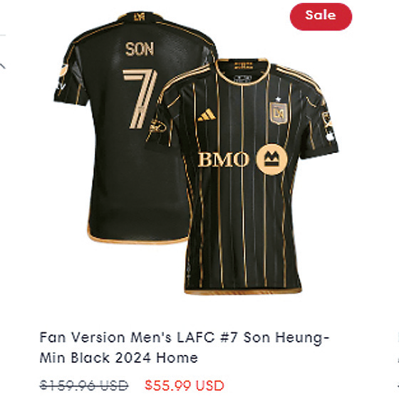 Son Heung-min LAFC fan version jersey sold for $56 on Topsoccer website, one-third of official price, August 12.