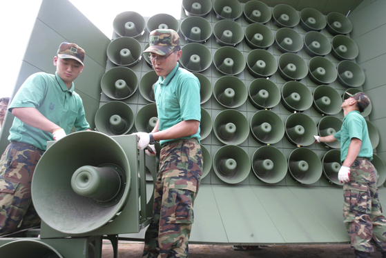 ![A loudspeaker installed along the western front line for propaganda broadcasts toward North Korea is dismantled in June 2004 in this file photo. [YONHAP]](https://spcdn.shortpixel.ai/spio/ret_img,q_cdnize,to_auto,s_webp:avif/en.koreadaily.com/wp-content/uploads/2025/08/0804-loudspeaker.jpg)