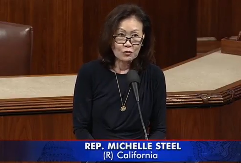 Michelle Steel, U.S. Representative for California’s 45th Congressional District, delivers a farewell speech on December 18 before her colleagues and Republican leadership. [Screen capture from X]
