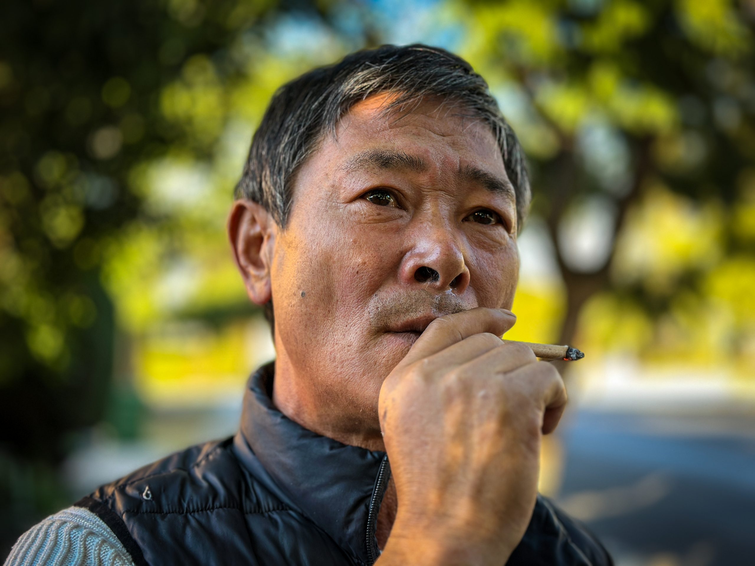 Choi Jung-chul takes a long drag from his cigarette and speaks about his journey. [Sangjin Kim, The Korea Daily]
