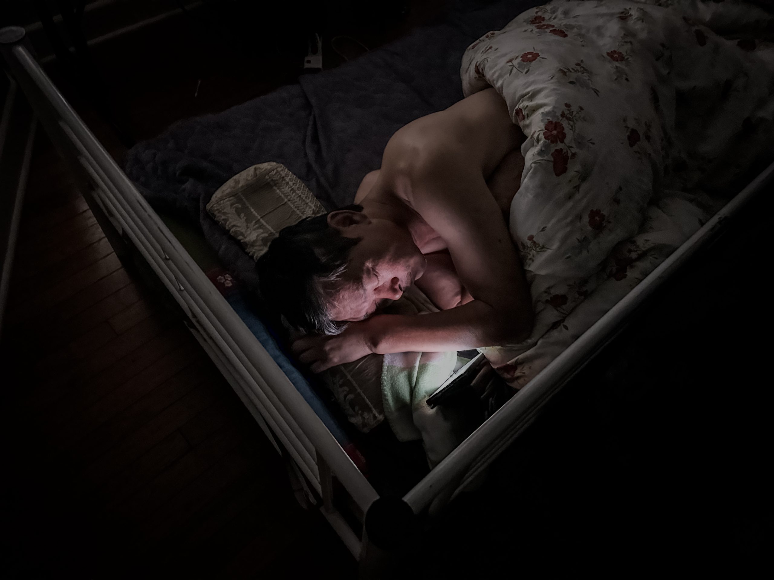 Choi looks at his phone late at night, searching for a place for North Korean defectors like himself. [Sangjin Kim, The Korea Daily]