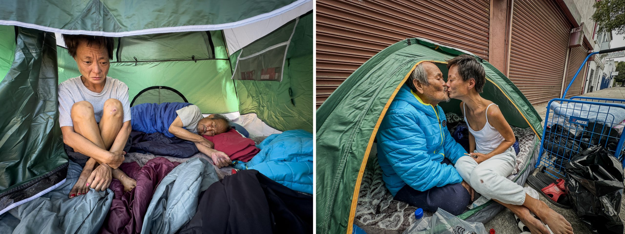 Yang, with limited mobility, could barely stand, and Olivia, frail herself, struggled to move their belongings. It took them over 15 minutes to drag their tent just 300 feet.