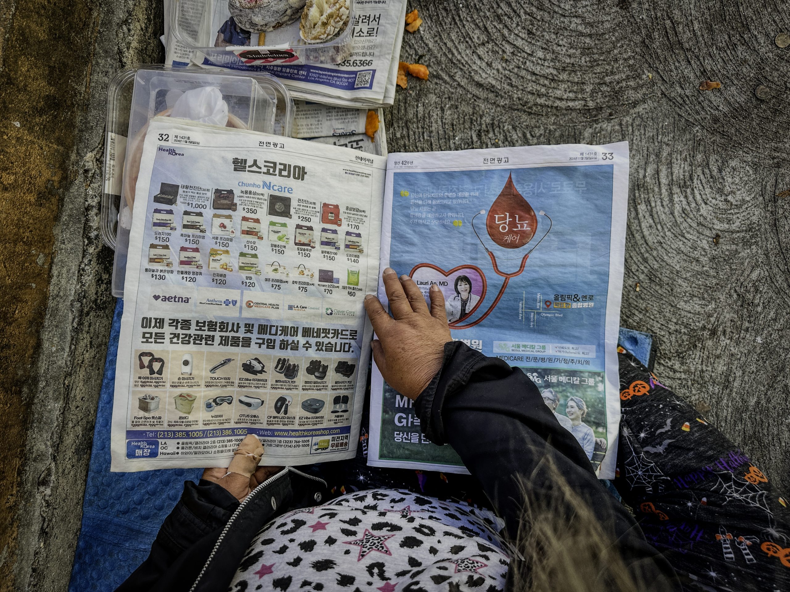 In that moment, it seemed the Korean characters on the newspaper were a reminder of her place in this community—one that, despite its challenges and occasional cruelty, still claims her as part of its own. Even if she is isolated in a trash-strewn alley, Yoon cannot escape Koreatown. And for all its flaws, this neighborhood still carries her name.