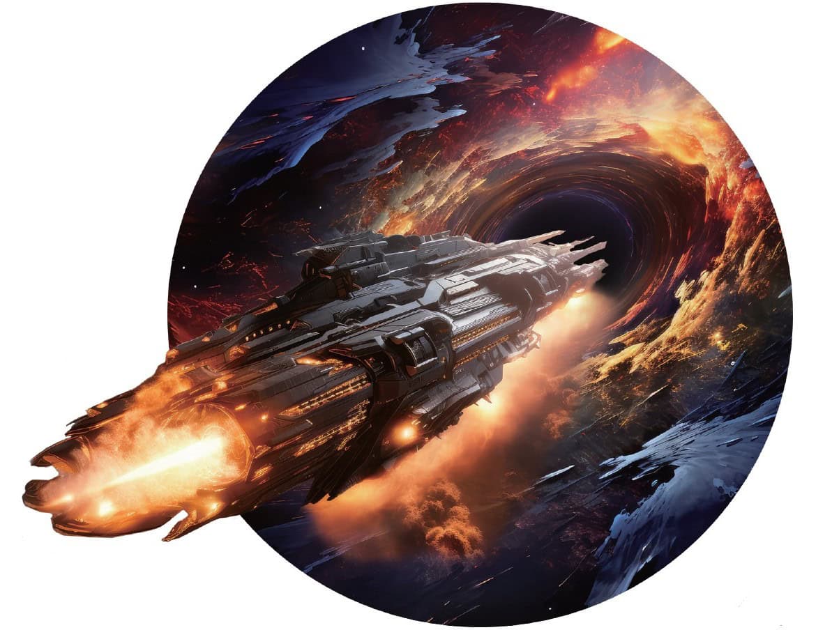 The Malta’s engines roared, erupting with explosive force as it sliced through the black hole’s event horizon.