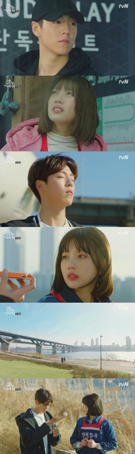 Then the two unexpectedly met again near the Han river. Yoon was on her way to deliver fruits and vegetables when she saw Kang working on his new music. Kang borrowed Yoon’s phone and recorded a melody he just thought of, forming another connection between them.