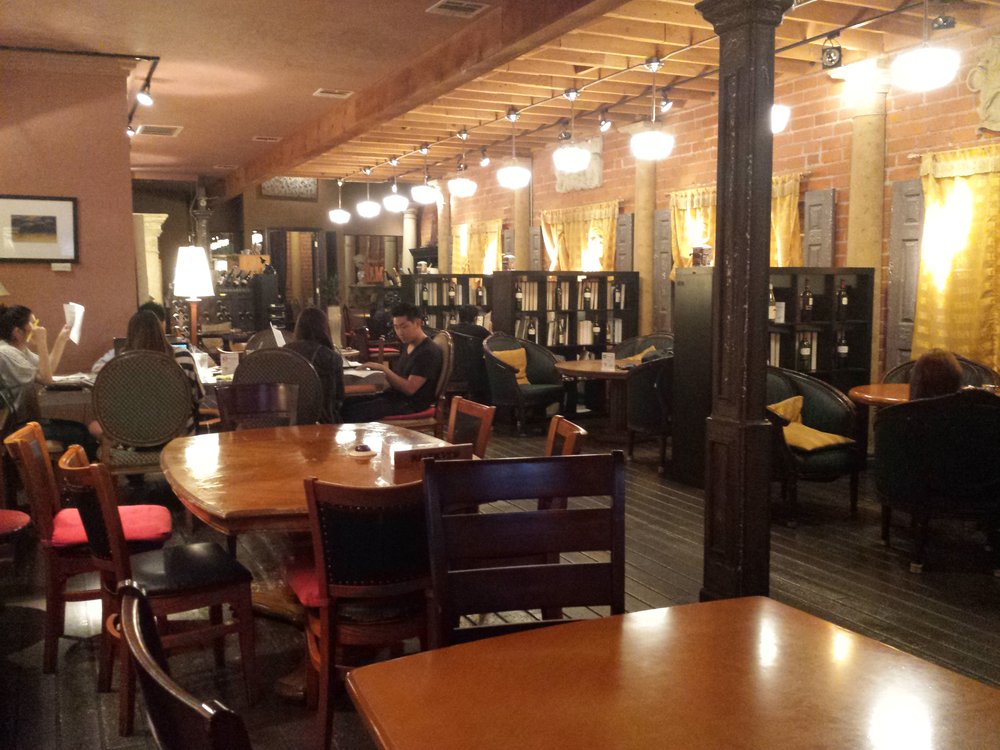 Tom N Toms is a Korean cafe chain expanding quickly in the US with at least eight locations in Ktown alone. What makes this one special, however, is its hours, always free parking, and ample power outlets. Bring a study group to reserve one of the rooms, too; the signs say you’ll need at least four people, but you could probably manage with three! If it’s not too cold, there are plenty of chairs and tables outside as well. Feel free to come to this cafe not only to study ‘til the wee hours of the night and next morning, but even to grab a reasonably priced cup of coffee and a warm snack after a long night out.
