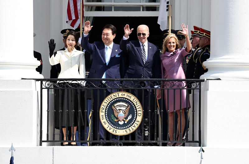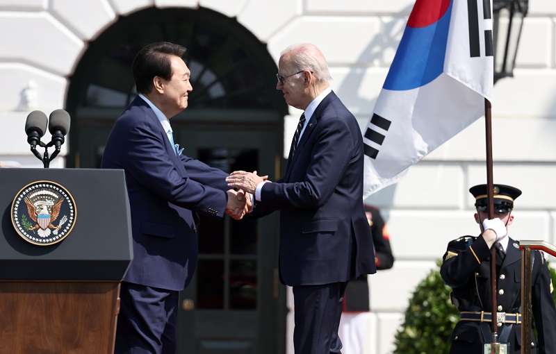 South Korean President Yoon Suk Yeol and U.S. President Joe Biden adopted the “Washington Declaration” to strengthen extended deterrence against North Korea’s nuclear and missile threats during their bilateral summit at the White House in Washington D.C. on April 26.