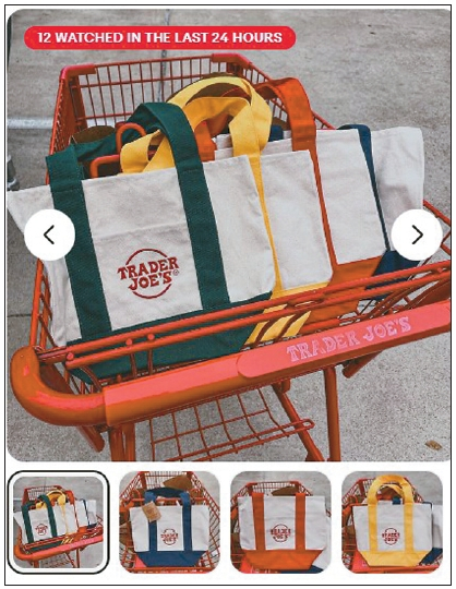 A $2.99 “canvas mini tote bag” sold at Trader Joe’s, a large U.S. grocery store, has sold out and its price has skyrocketed nearly 200 times online, CNN reported on March 10.