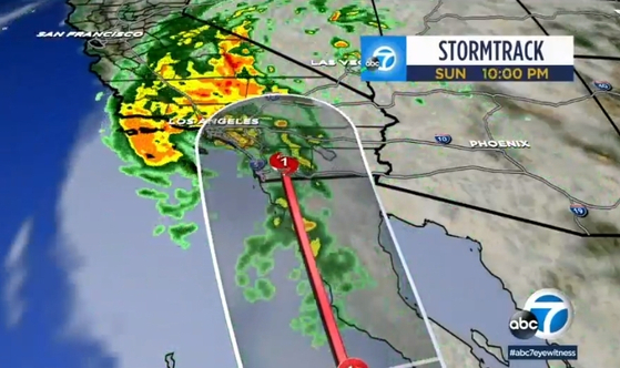 For the first time in California’s history, a tropical storm watch has been issued. Heavy rain and flooding are expected in some areas in California. [Screen captured from ABC7 News]