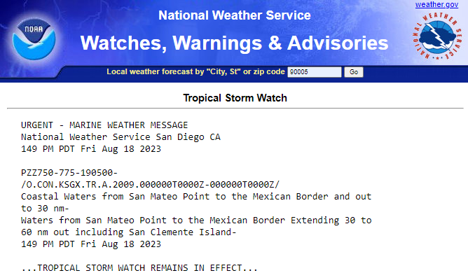 For updated information on Hurricane Hilary, please visit National Weather Service. (https://forecast.weather.gov/wwamap/wwatxtget.php?cwa=SGX&wwa=tropical%20storm%20watch)