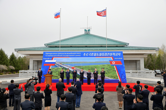 ![Officials attend a ground-breaking ceremony for a new road bridge spanning the Tumen River that will link North Korea to Russia in Rason Municipality, North Korea, on April 30, 2025, in this photo released by North Korea's official Korean Central News Agency. [YONHAP]](https://spcdn.shortpixel.ai/spio/ret_img,q_cdnize,to_auto,s_webp:avif/en.koreadaily.com/wp-content/uploads/2025/05/0501-bridge.jpg)
