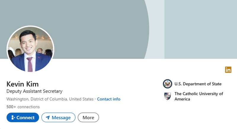 In the State Department, Kevin Kim, a former professional staff member for the Senate Armed Services Committee, has joined the Bureau of East Asian and Pacific Affairs (EAP) as a DAS. Kim previously served as an aide to Senator Bill Hagerty (R-TN) and worked in the State Department’s Office of the Special Representative for North Korea Policy from 2018 to 2020 during Trump’s first term.