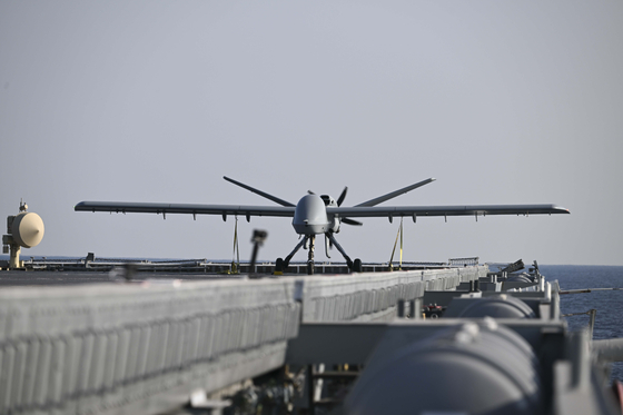 A U.S. General Atomics MQ-1C Gray Eagle, an unmanned reconnaissance and attack aircraft, took off from the Korean Navy’s amphibious assault ship ROKS Dokdo off the coast of Pohang, North Gyeongsang, in the East Sea on November 12.