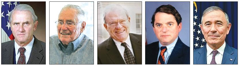 Former U.S. Ambassadors to South Korea. From left: James Lilley, Donald Gregg, James Laney, Thomas Hubbard, and Harry Harris.
