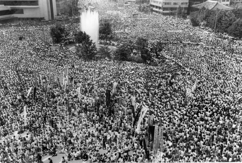 In June 1987, students and citizens gathered in front of Seoul City Hall to demand democracy. [JoongAng Photo]