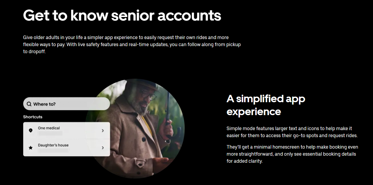 Meanwhile, competitor Lyft has reportedly begun trialing a similar simplified experience for seniors, called Lyft Silver, around the same time.