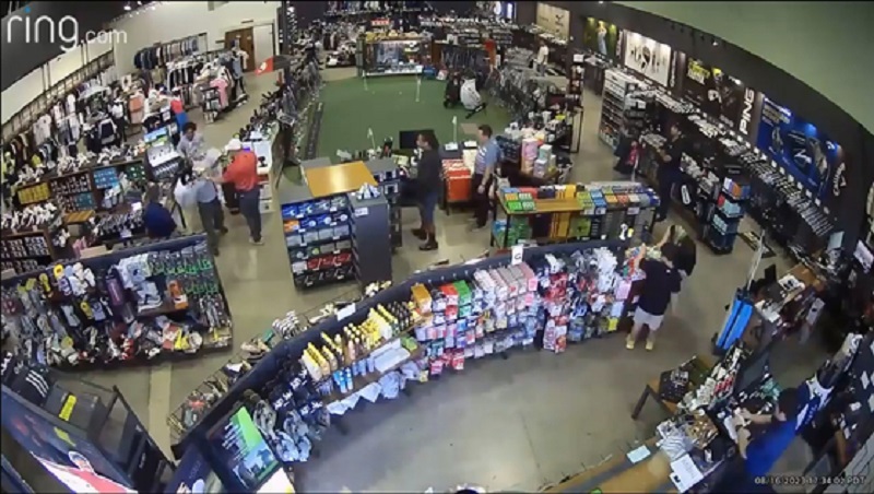 In a video provided by the store, three black men were captured on camera seizing three sets of high-end golf clubs. They proceeded to shove both the manager and others present before making their escape.