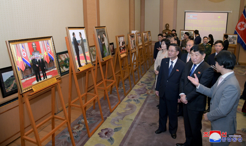 A photo exhibition highlighting the achievements of Kim Il-sung, Kim Jong-il, and Kim Jong-un was held on November 27, 2023, at the Vietnamese Embassy in North Korea, commemorating the 65th anniversary of Kim Il-sung’s official visit to Vietnam. [YONHAP, KCNA]