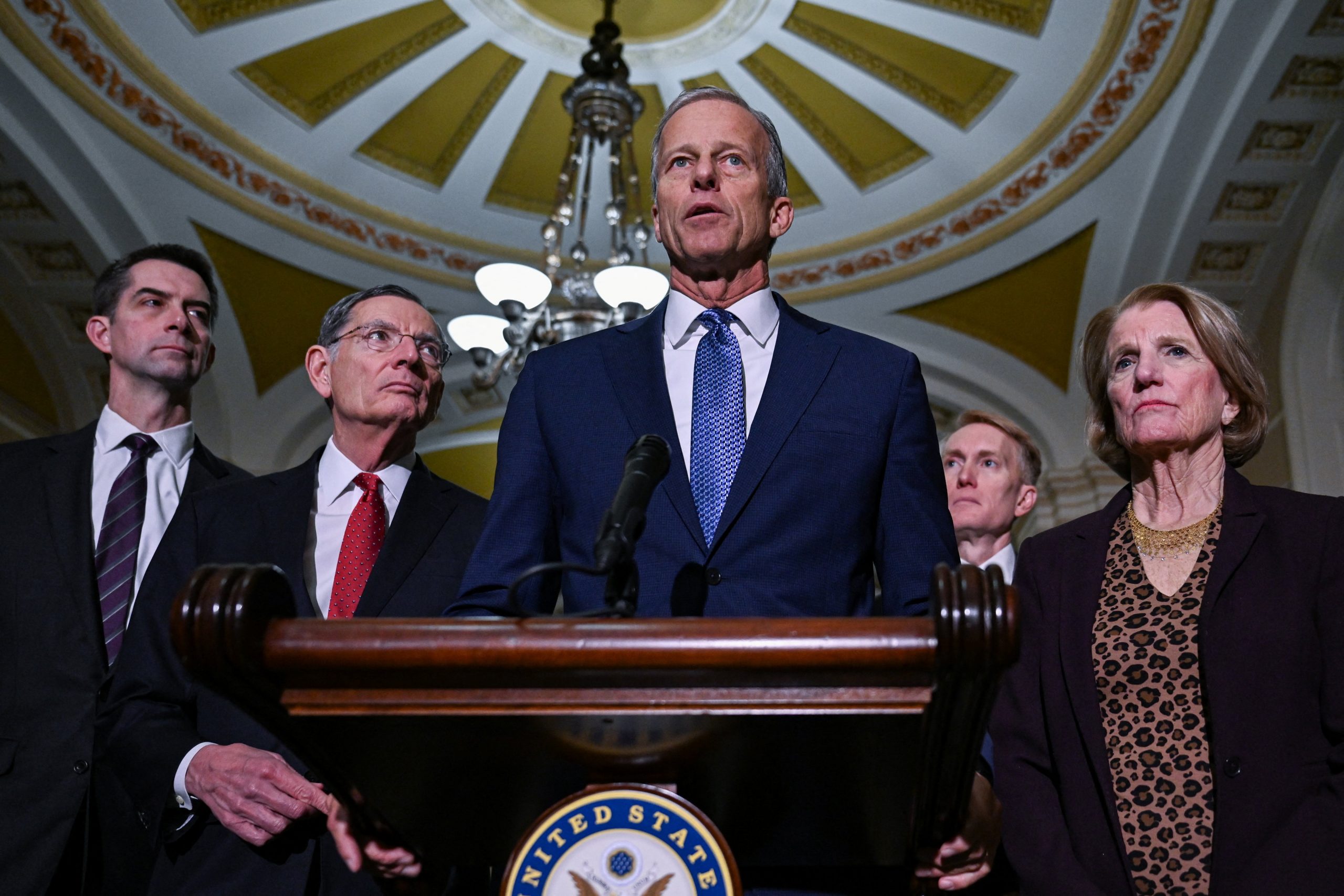 U.S. Senate Majority Leader John Thune (R-SD) holds a press conference following the Republican weekly policy lunch on Capitol Hill in Washington, D.C., February 3. [REUTERS]